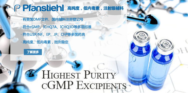 “熱烈祝賀Pfanstiehl的注射級甘氨酸Glycine(G-140)喜獲CDE登記號F20250000403, 這是Pfanstiehl產品獲得的第18個CDE登記號!”甘氨酸在醫藥輔料制劑中應用廣泛,, 可作為緩沖劑,增溶劑,穩定劑等,具有諸多優勢。Pfanstiehl秉承一貫高品質理念,為滿足全球生物制藥行業對于高品質甘氨酸的需求,隆重推出的注射級甘氨酸Glycine (G-140), 具有超高純度,超低內毒素,超低金屬殘留的特點,單獨檢測29種金屬離子,并且新增DNA,RNA,DNA酶,RNA酶和脂肪酶,亞硝酸鹽等多項質量指標的檢測,符合多國藥典規定(USP, EP, BP, JPE, ChP),可用于生物治療性藥物和疫苗的生產。產品信息:· 產品名稱:Glycine, High Purity, Low Endotoxin, Low Metals, USP, EP, BP, JPE, ChP (G-140)· 中文名稱:甘氨酸· 分子式:C2H5NO2· 分子量:75.07 g / mol· CAS號:56-40-6· 產品貨號:G-140產品特點: · 超高純度,超低內毒素,超低微生物含量,超低金屬雜質殘留· 質量指標新增DNA,RNA,DNA酶,RNA酶,脂肪酶和亞硝酸鹽檢測· 符合多國藥典:USP, EP, BP, JPE, ChP· 符合ICH Q3D標準· 符合GMP標準· 已獲DMF和CDE登記號 產品應用:· 緩沖劑· 穩定劑· 增溶劑如果您對Pfanstiehl注射級別Glycine G-140感興趣,歡迎聯系Pfanstiehl 中國區代理商北京西美杰科技有限公司獲得如下詳細的產品概況說明文件和測試樣品。Pfanstiehl Inc.最新產品系列如下,歡迎聯系北京西美杰科技有限公司獲取100g裝免費樣品。北京西美杰科技有限公司為Pfanstiehl中國代理,為客戶提供完善的技術支持與售后服務。歡迎撥打西美杰客服電話400-050-4006或者登陸網站www_xmjsci_com.sien168.cn了解更多信息。 更多>